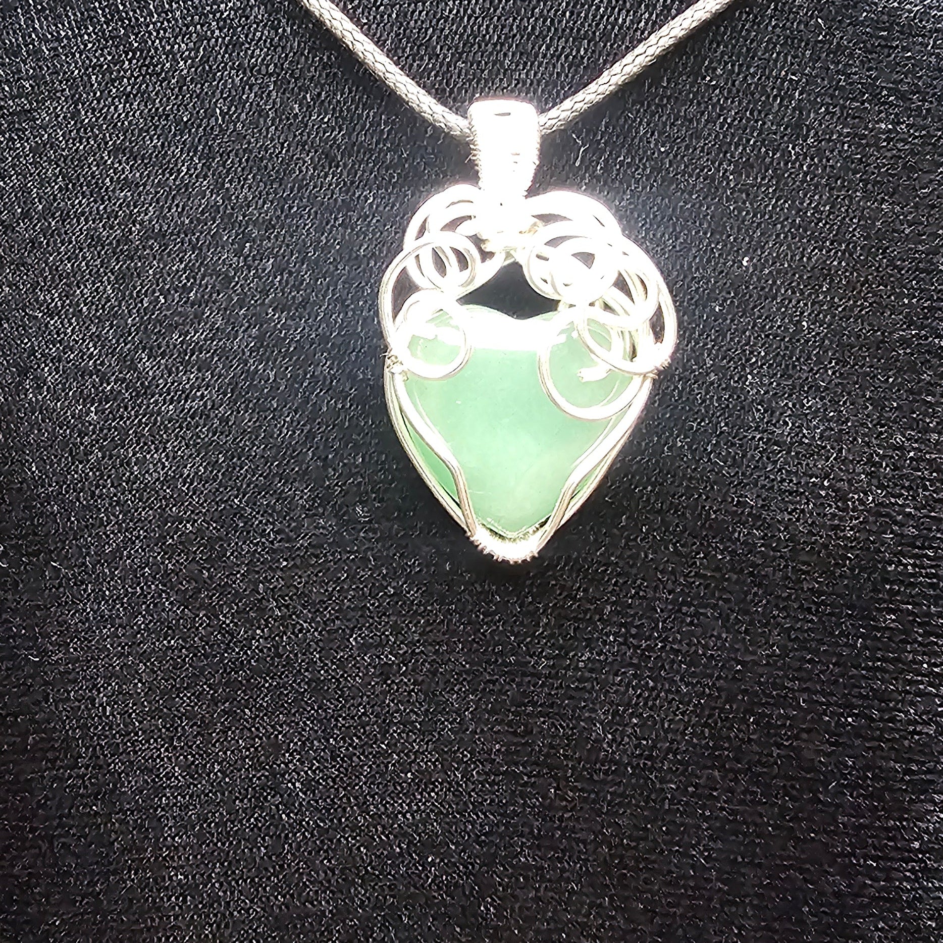 Materials: Natural green aventurine heart, nontarnishing silver plated copper wire